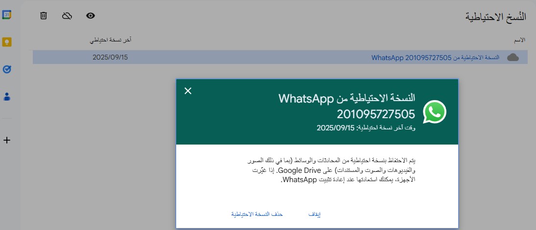 استعادة نسخة احتياطية للواتساب من جوجل درايف