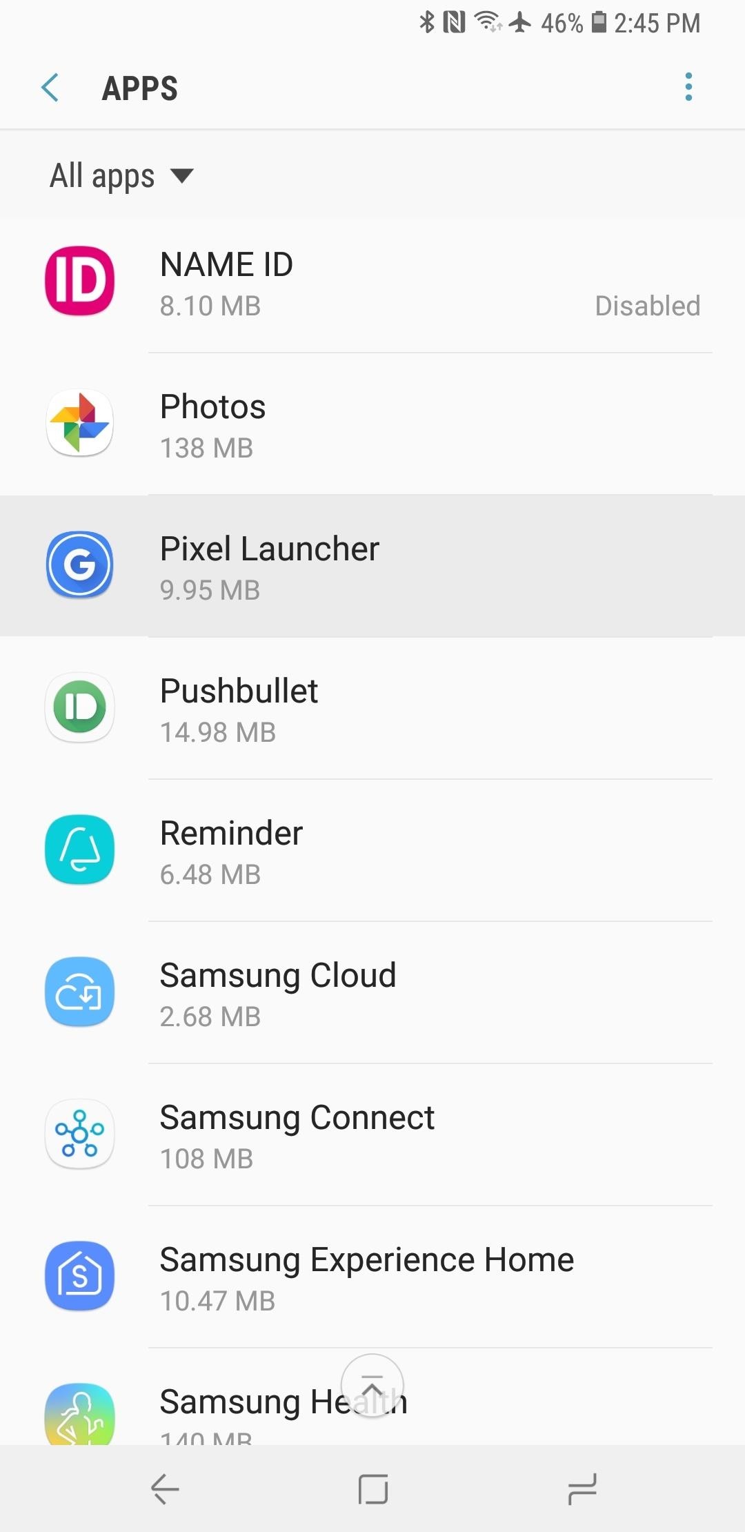 لذلك، عبر قائمة إعدادات الهاتف توجه إلى مدير التطبيقات، أو التطبيقات إعتمادًا على المُسمى الذي ستجده، ثم في قائمة تطبيقات الهاتف قم بالبحث عن تطبيق “Pixel Launcher” بالأسفل. إضغط عليه، ثم توجه للأسفل وابحث عن خيار تغيير الصلاحيات أو “Permissions”. وبعد ذلك قم بتشغيل كافة الصلاحيات المغلقة أمامًا والتي غالبًا ما ستكون “Location,” “Phone,” وأيضًا “Storage.”