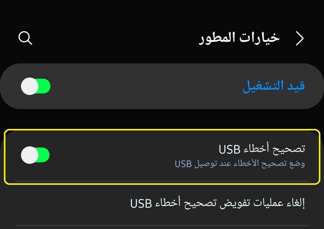 - على هاتفك الأندرويد فعّل وضع تصحيح USB (أو USB Debugging بالإنجليزية).
