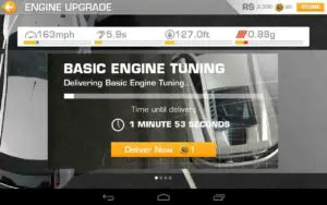 ويتوقف أداؤك في بعض السباقات على حالة السيارة لديك. وهذا يعني أن سيارتك ستحتاج دائما إلى التحديث. وهنا أيضا ستنتظر بشكل اجباري. وبعض السباقات الطويلة بإمكانية أن تنهك قوى السيارة لديك، منا يضطرك إلى احداث الكثير من الإصلاحات بها حتى تتمكن من إعادة تشغيلها للسباقات القادمة. فقد اضطررت في الكثير من الأوقات أن انتظر أكثر من 30 دقيقة حتى تنتهي اعمال الصيانة على سيارتي. ولكي تتخطى هذا، فقد يكلفك الأمر 8 قطع ذهبية. ولكي تجمع 10 قطع ذهبية مثلا، فسيكلفك الأمر 1.99 دولار أميركي، وهذا مبلغا باهظا لتتمكن من الرجوع إلى اللعبة سريعا.
